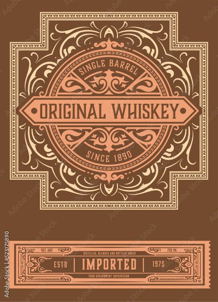 Whiskey label with old frames