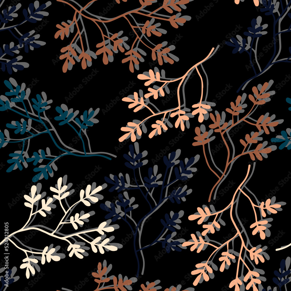Branches With Colorful Leaves Vector Seamless Pattern Wallpaper Mural - Decorly Solutions | Decorly Solutions