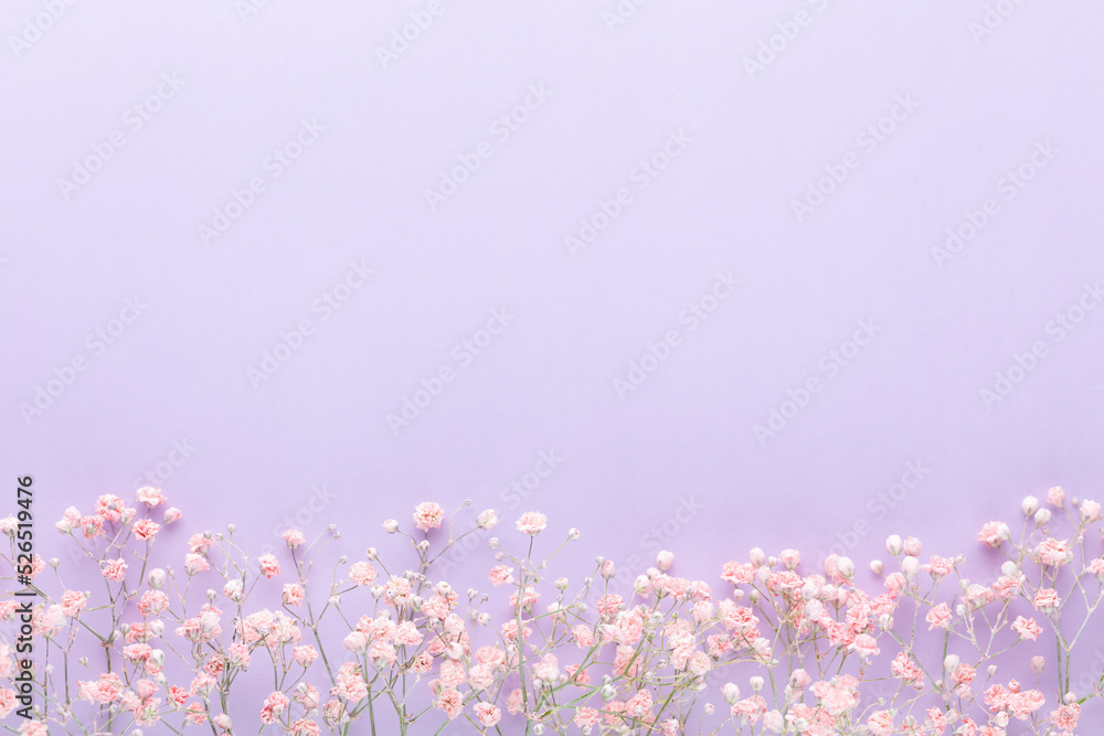 Beautiful flower background of pink gypsophila flowers. Flat lay, top view. Floral pattern.