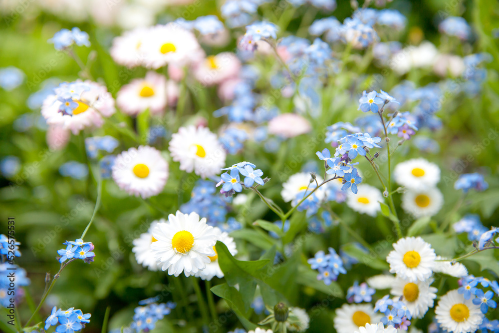 Blooming Daisies And Forget-me-not Flowers From Above Wallpaper Mural - Decorly Solutions | Decorly Solutions