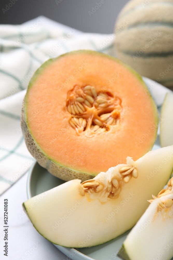 Tasty Colorful Ripe Melons On White Marble Table Wallpaper Mural - Decorly Solutions | Decorly Solutions