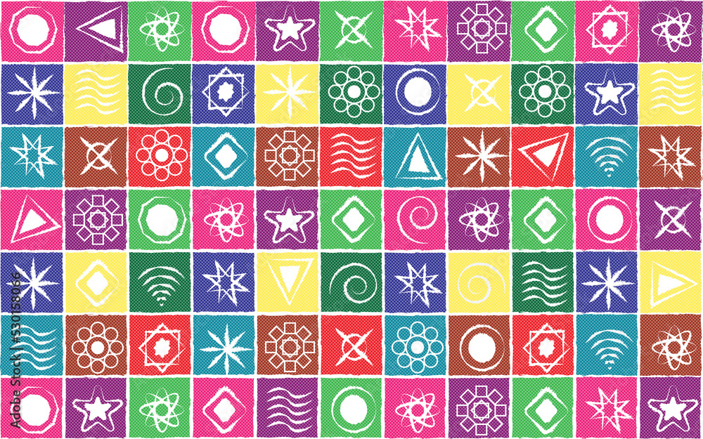Seamless pattern with colorful squares symbols graphic art d Wallpaper