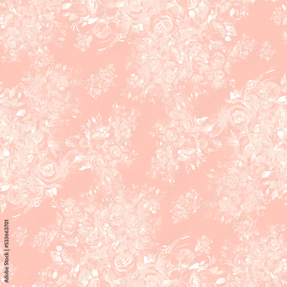 Floral Seamless Print Bouquets Of Tender Roses Abstract Wallpaper Mural - Decorly Solutions | Decorly Solutions
