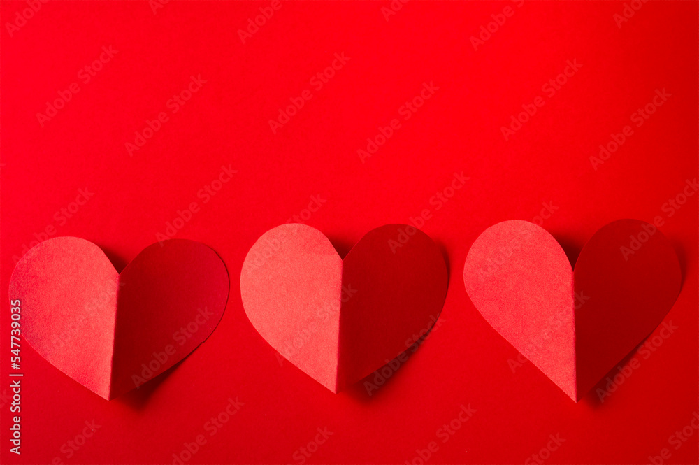 Three Red Paper Hearts On Red Background With Wallpaper Mural - Decorly Solutions | Decorly Solutions