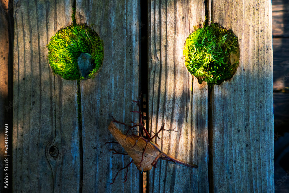 Rustic wooden door with greenery wreath charming cottage photo natural lighting close-up home decor inspiration