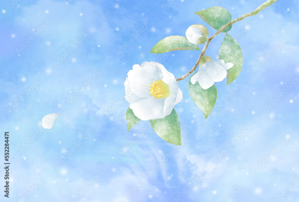 青い雪景色と白い椿 Wallpaper Mural - Decorly Solutions | Decorly Solutions