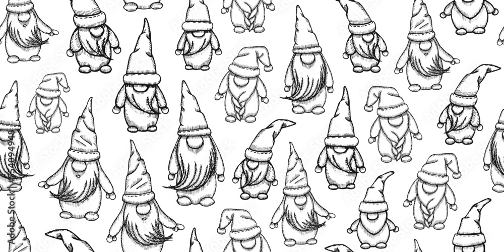 Seamless Background With Vector Hand Drawn Gnomes Funny Wallpaper Mural - Decorly Solutions | Decorly Solutions