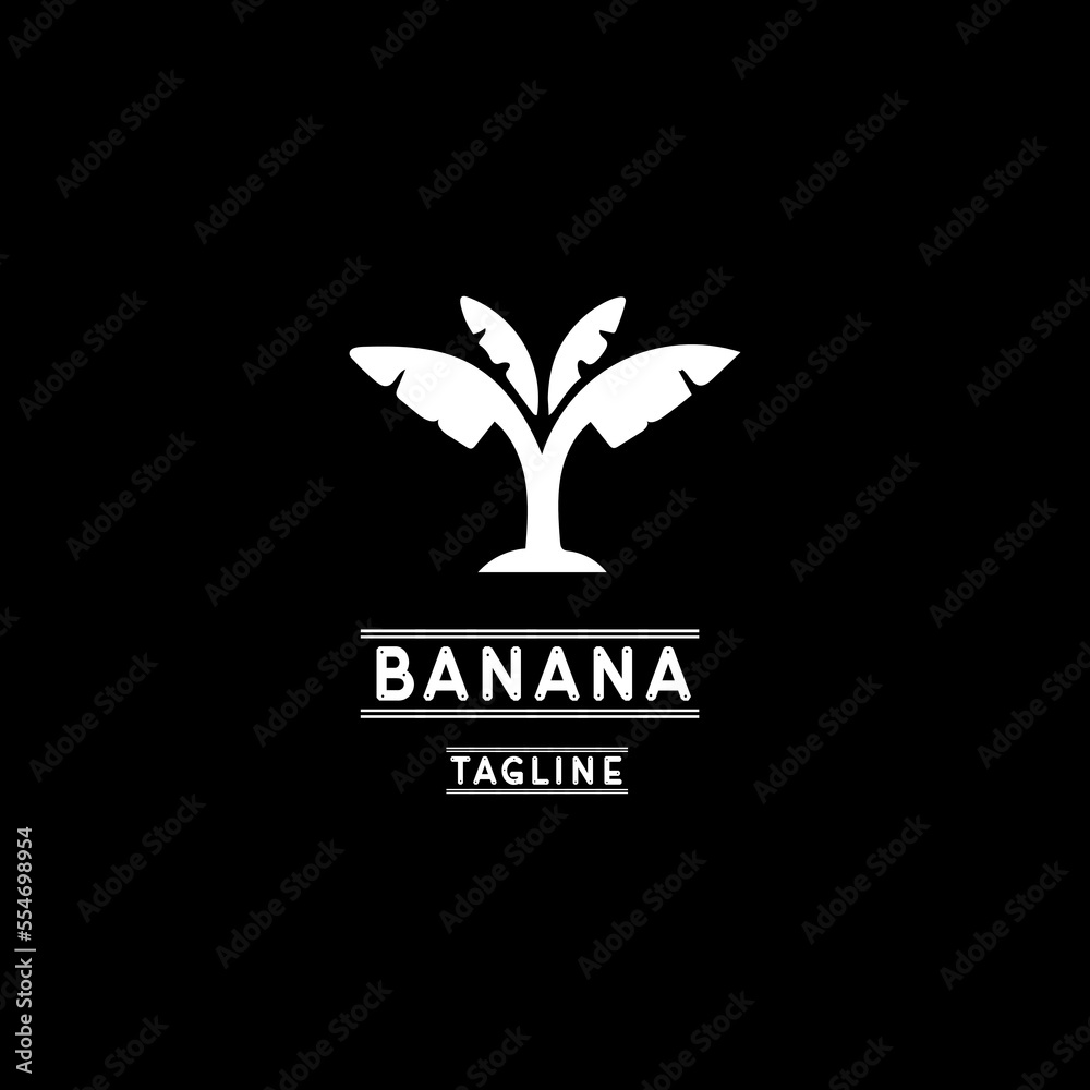 Banana Tree Logo, Tropical Fruit Plant Flat Silhouette Template Illustration Design