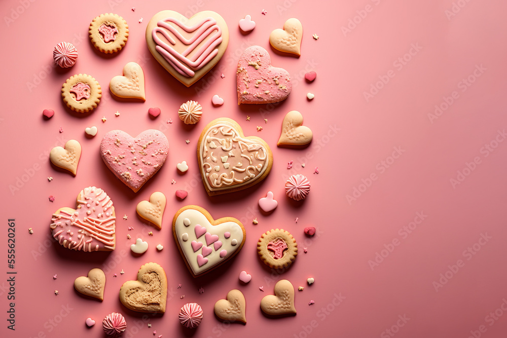 Valentines Day Heart Shaped Cookies Generative Ai Wallpaper Mural - Decorly Solutions | Decorly Solutions