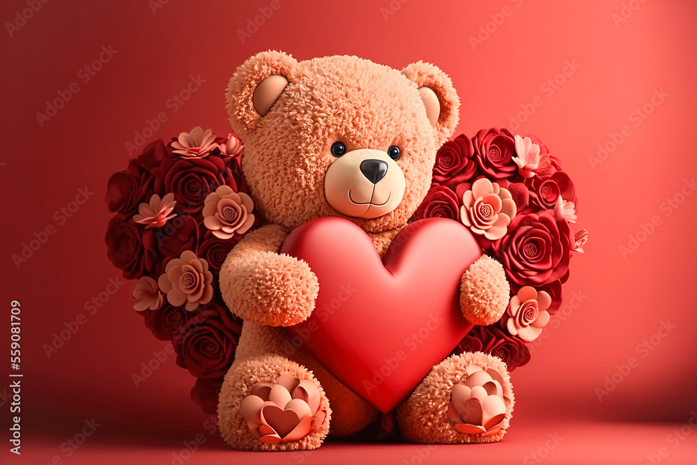 Teddy Bear With Hearts And Roses For Valentine Wallpaper Mural - Decorly Solutions | Decorly Solutions