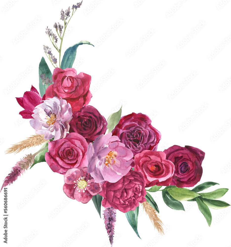Watercolor Floral Arrangement Hand Painted Botanical Illustration With Wallpaper Mural - Decorly Solutions | Decorly Solutions