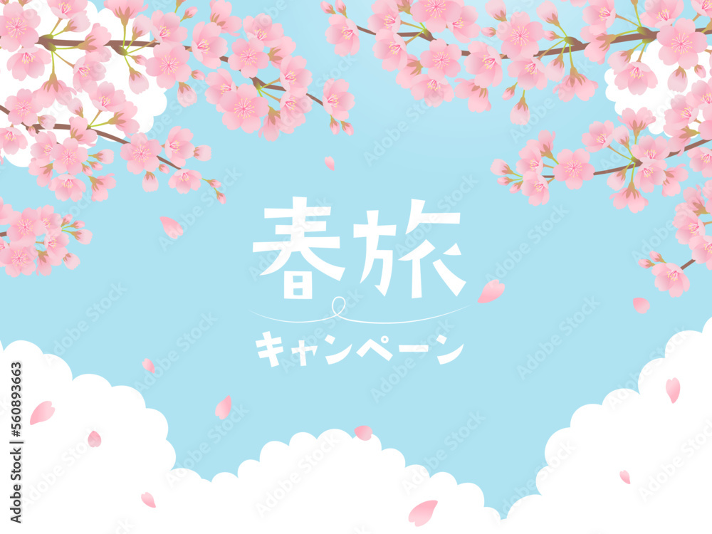 春旅キャンペーンバナー素材_桜と青空_ベクターイラスト Wallpaper Mural - Decorly Solutions | Decorly Solutions