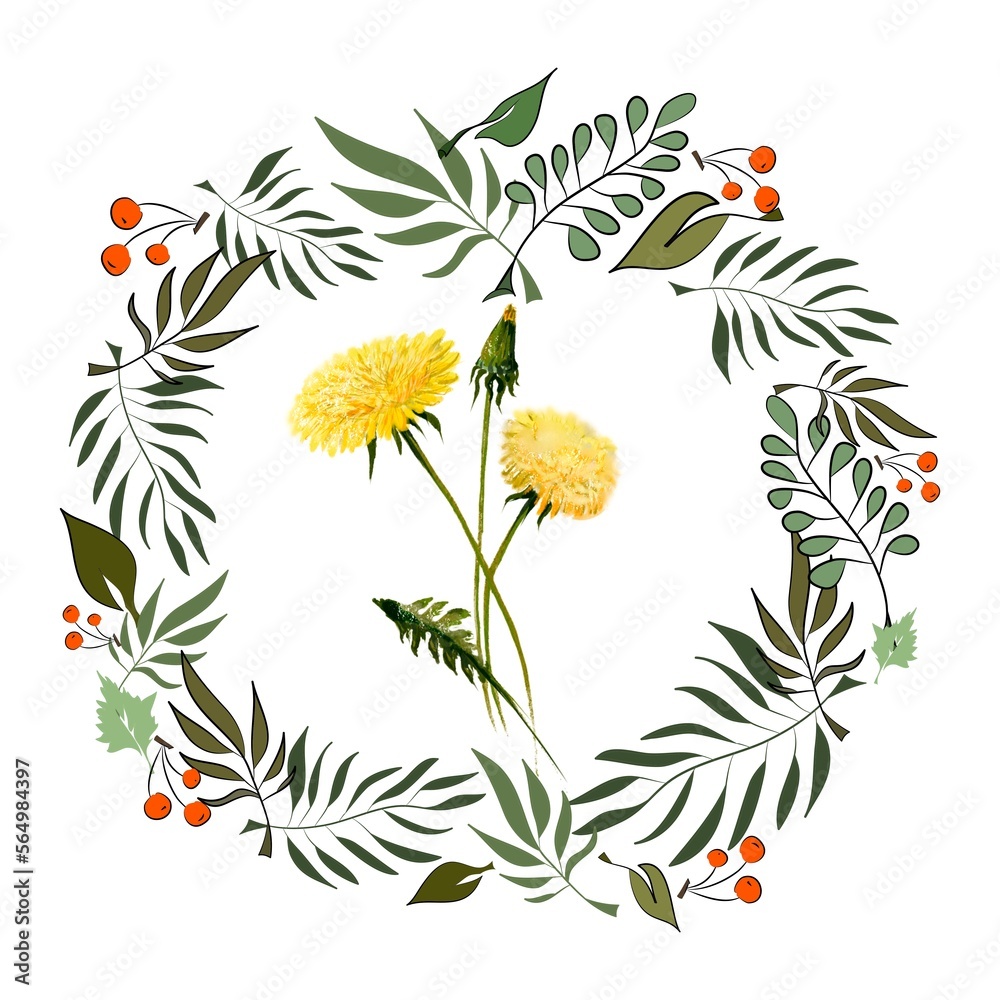 Wild plants and flowers, pattern, field herbs, natural background, hand drawn illustration.