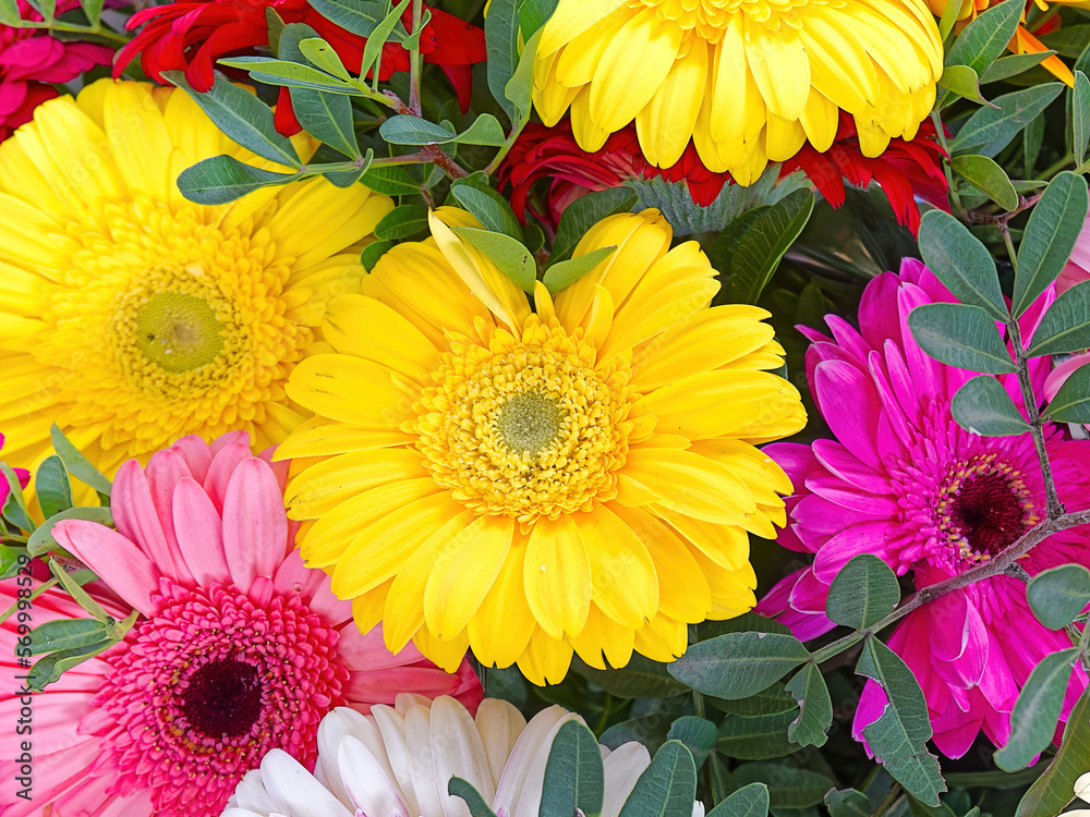 Bright Colorful Gerbera Flowers Top View Close Up Wallpaper Mural - Decorly Solutions | Decorly Solutions