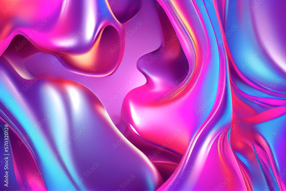 Abstract vibrant pink, blue, purple wavy 3D background.