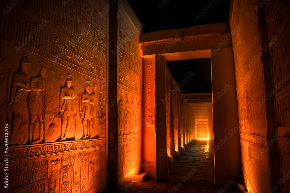Mystic Egyptian hieroglyphs in Egypt Edfu temple, Aswan. Generation AI