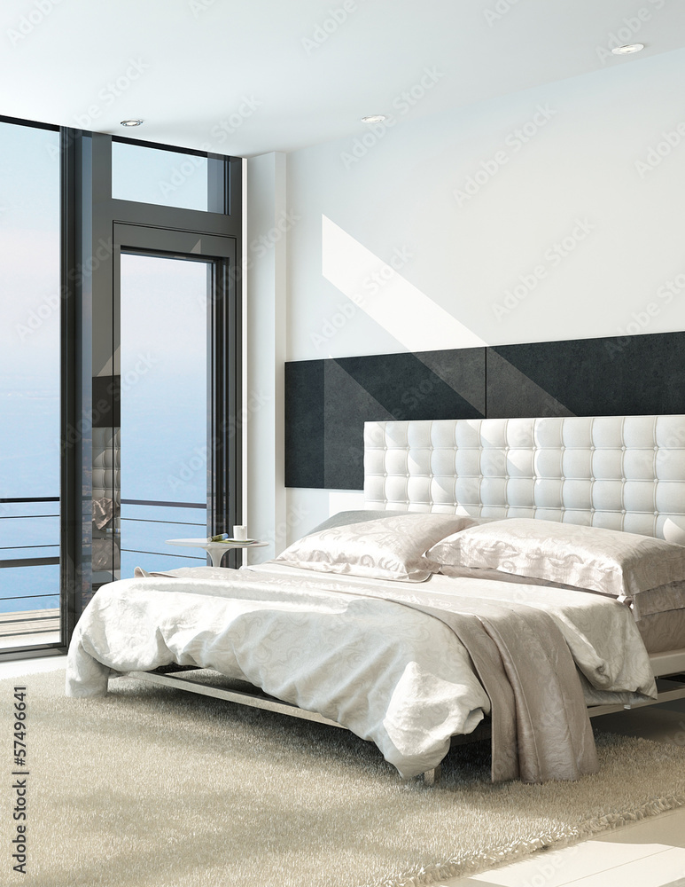 Contemporary modern sunny bedroom interior with huge windows Wallpaper