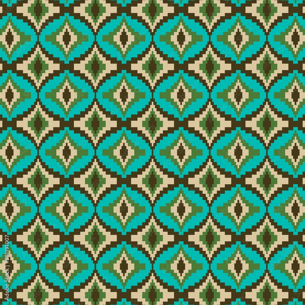 Bargello Florentine Embroidery Pattern Blue Green Brown Wallpaper Mural - Decorly Solutions | Decorly Solutions