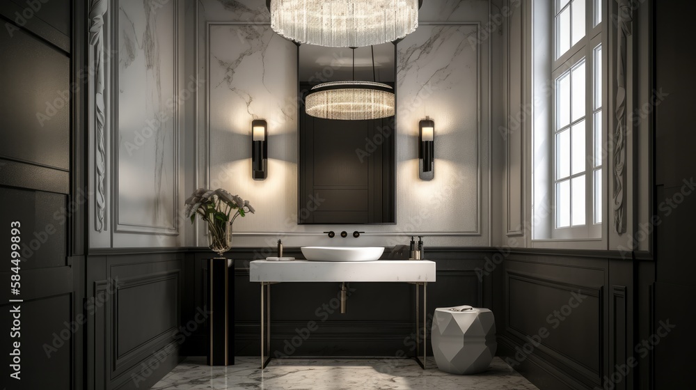 Beautiful Home Interior Design Powder Room Contemporary Interior Design Elevation Look At Counter With Basin And Dressing Mirror Home Concept, Image Ai Generate