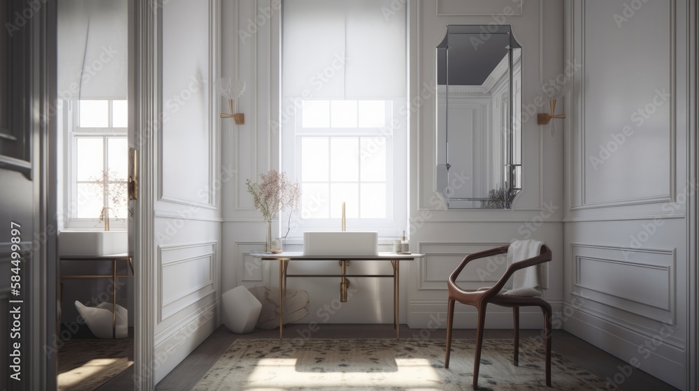 Beautiful Home Interior Design Powder Room Contemporary Interior Design Elevation Look At Counter With Basin And Dressing Mirror Home Concept, Image Ai Generate