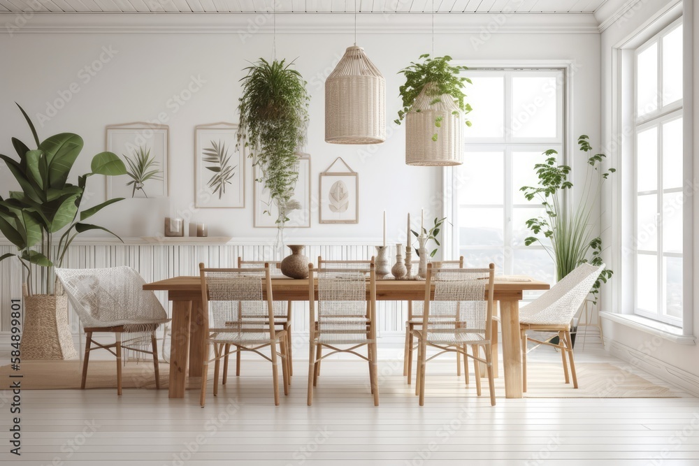 Serene Dining Space With Contemporary Flair: Sunlit Room Features Sleek Furniture, Minimalist Decor, And Soft Neutral Tones, Creating A Warm And Inviting Ambiance Perfect For Gatherings.