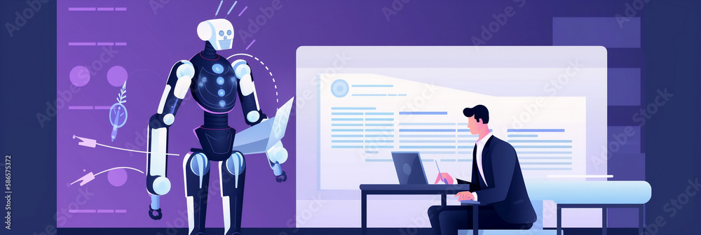 Cute artificial intelligence robot, Android, running. Generative AI.
