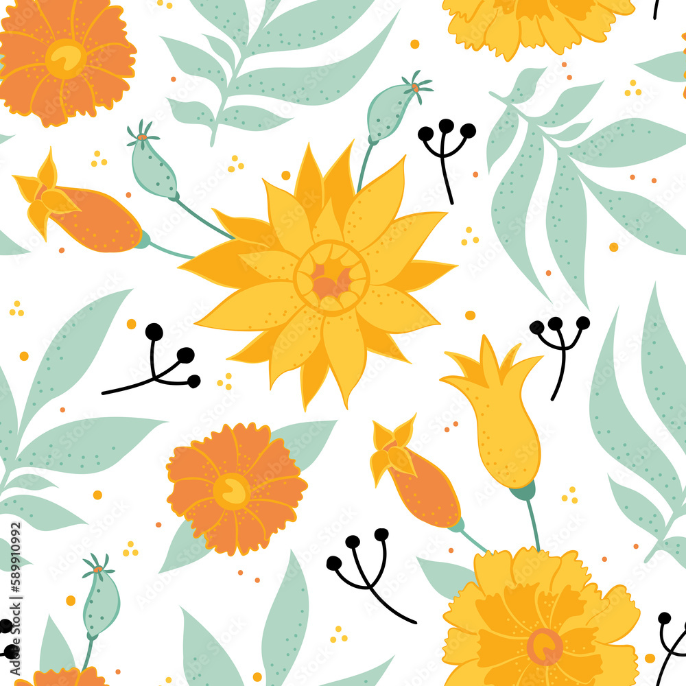 Seamless Background With Floral Ornament Raster Illustration For Wallpaper Mural - Decorly Solutions | Decorly Solutions