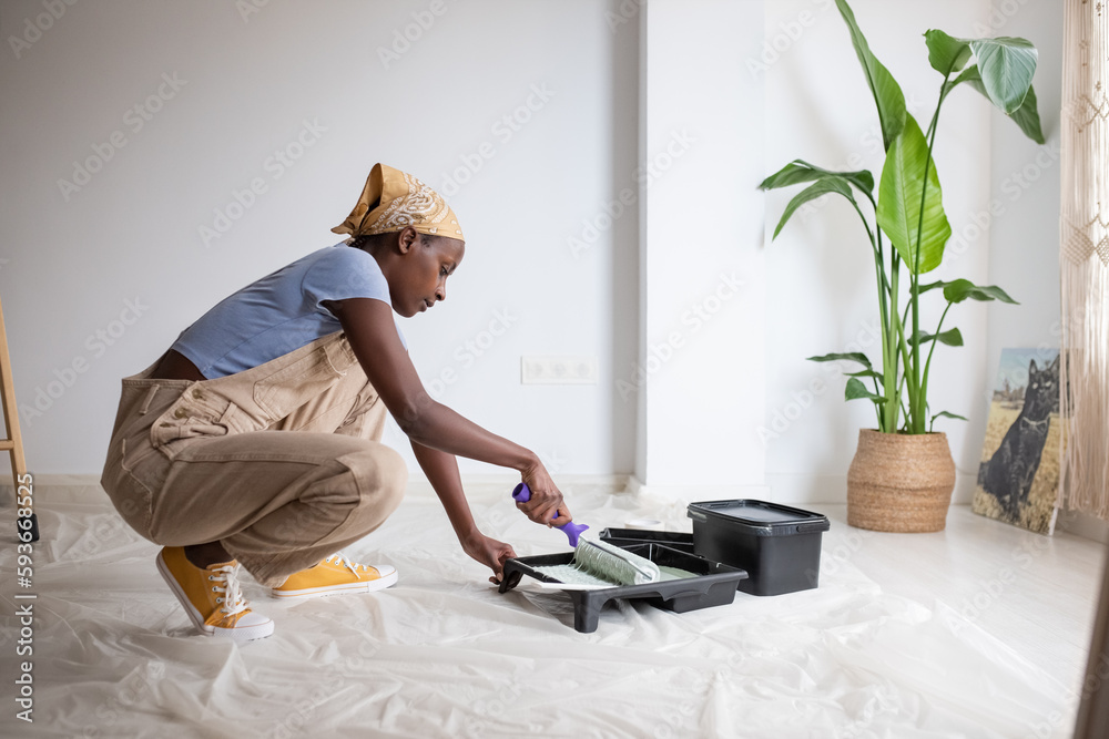 African American Woman Spreading Paint On Roller Wallpaper Mural - Decorly Solutions | Decorly Solutions