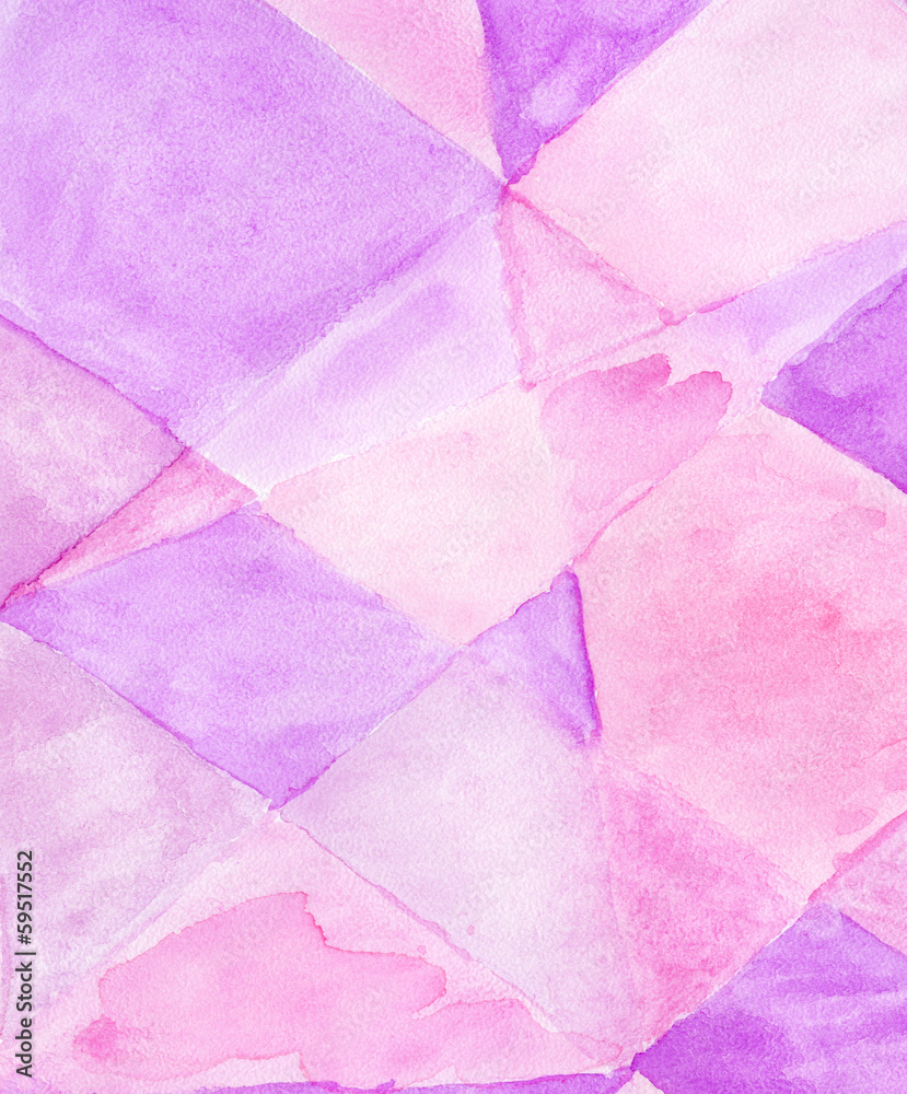 A macro photograph showcasing a vibrant purple watercolor background with triangular patterns in shades of magenta, violet, and electric blue