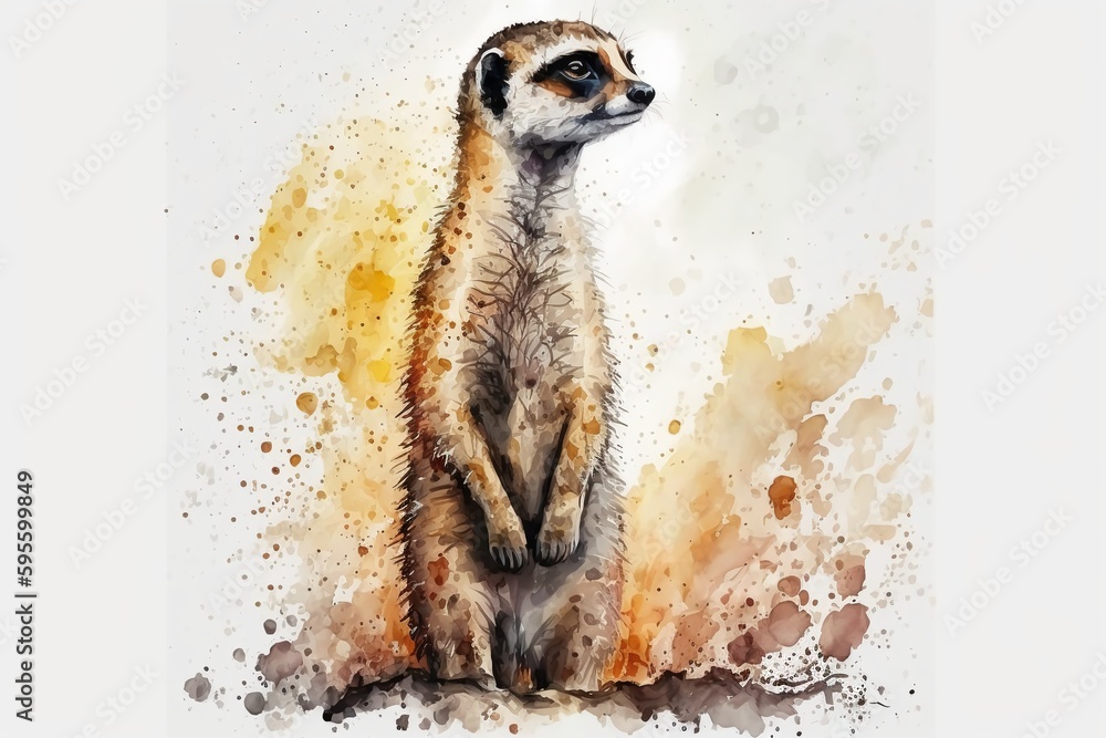 Watercolor Meerkat Illustration White Background Generative Ai Wallpaper Mural - Decorly Solutions | Decorly Solutions