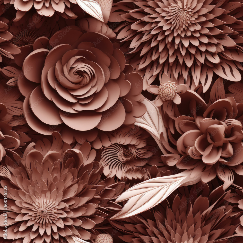 Elegant 3d Floral Seamless Paper Patterns - Generative Wallpaper Mural - Decorly Solutions | Decorly Solutions
