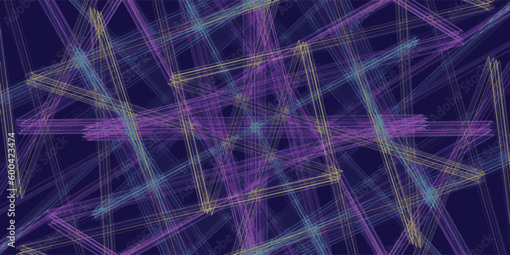 Energetic abstract digital grid with intersecting blue light streaks on dark background