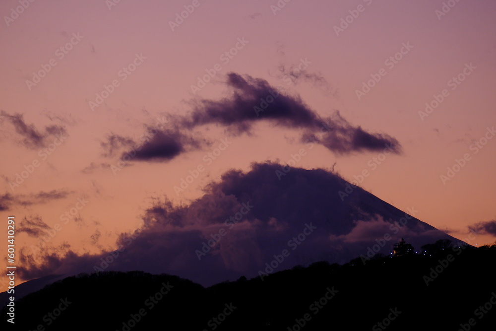 夕暮れ時に雲がかかった富士山 Wallpaper