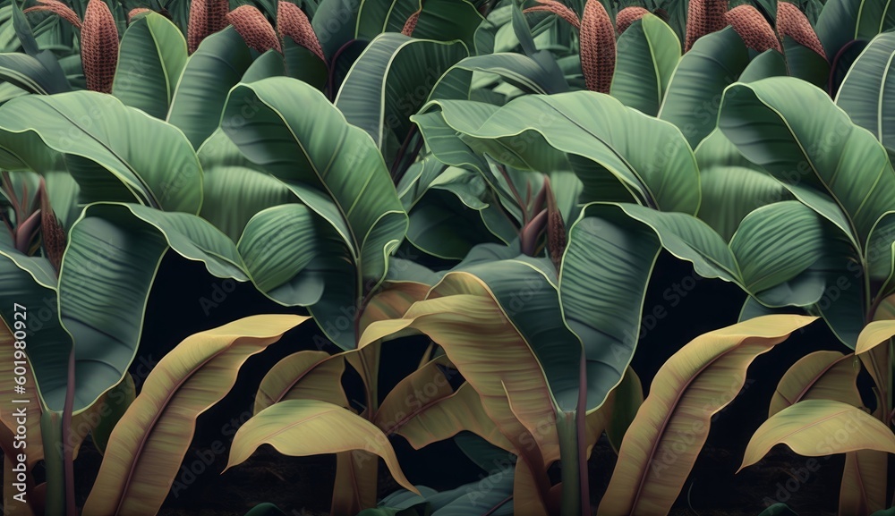 Banana Trees Plantation Colorful Textured Leaves Vintage Tropical Wallpaper Mural - Decorly Solutions | Decorly Solutions