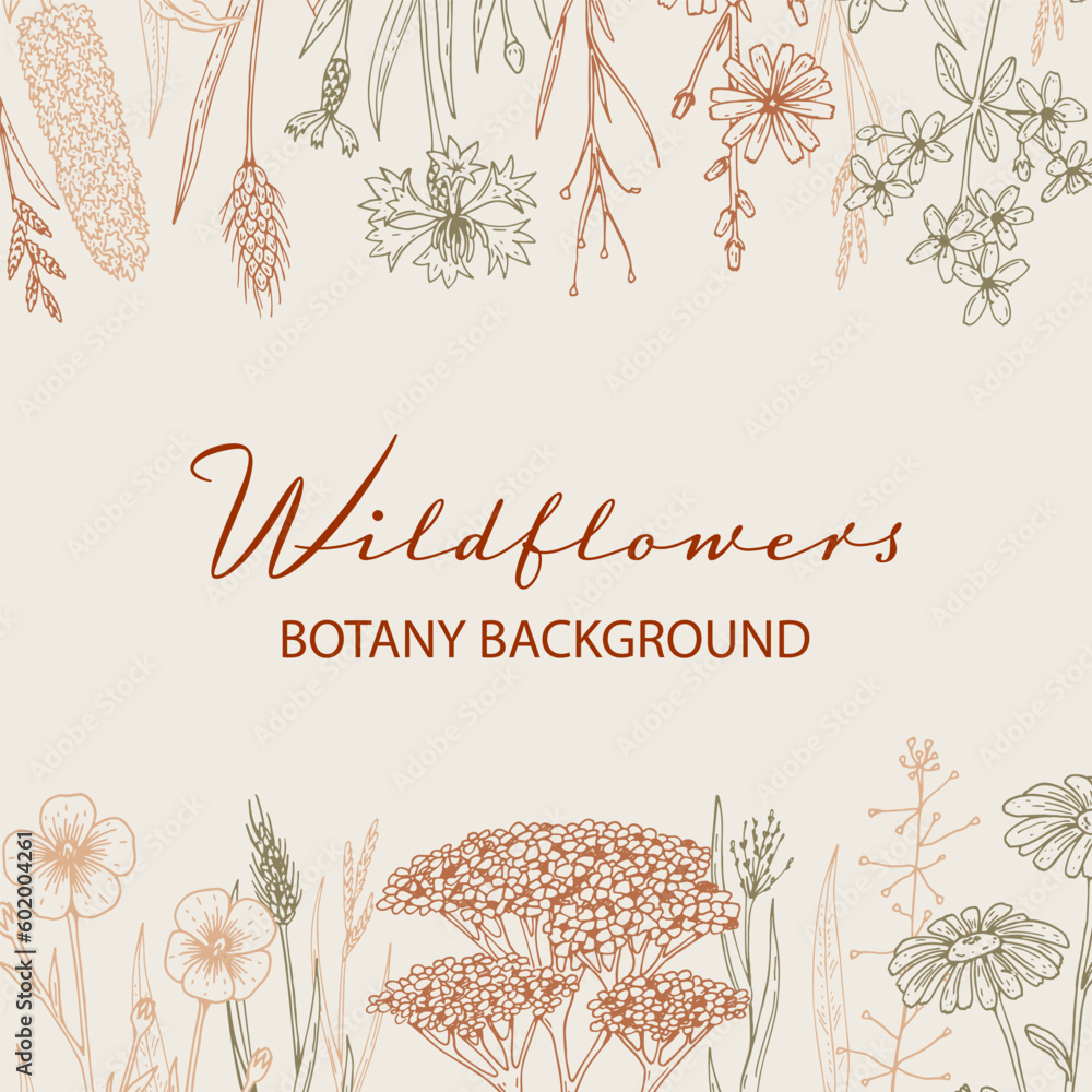 Hand drawn summer wildflowers frame Vector illustration in s Wallpaper