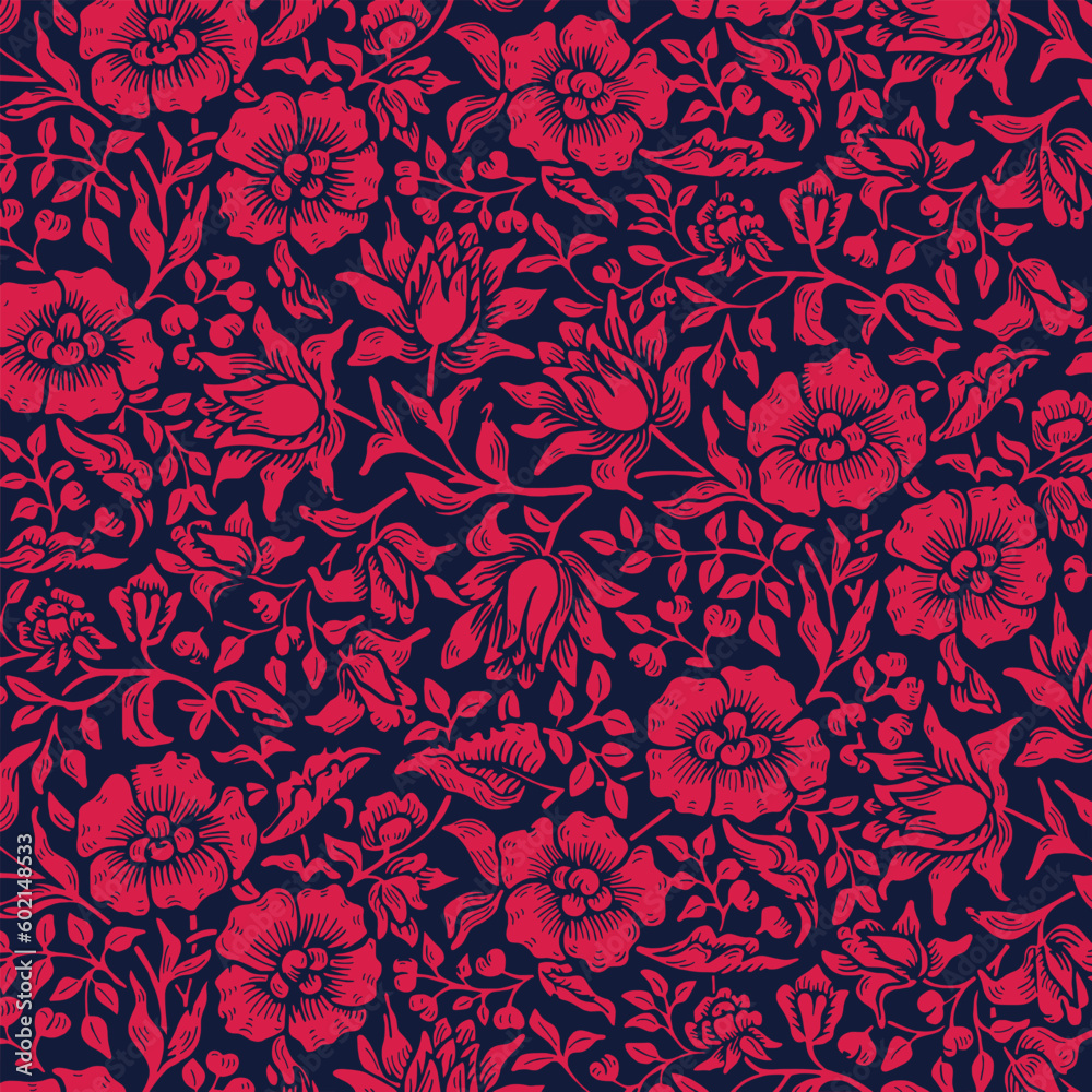 Illustration Ornate Floral Pattern Decorative Dark Red Color For Presentations Marketing, Decks, Ads, Books Covers, Digital Interfaces, Print Design Templates Material, Wedding Invitation Cards