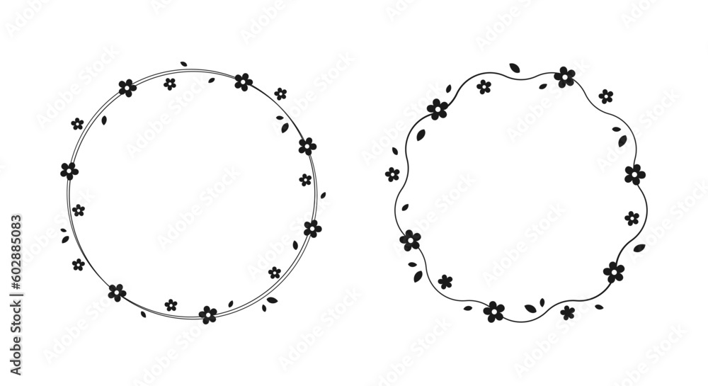 Round Floral Frame Silhouette Doodle Spring Botanical Circle Wallpaper Mural - Decorly Solutions | Decorly Solutions