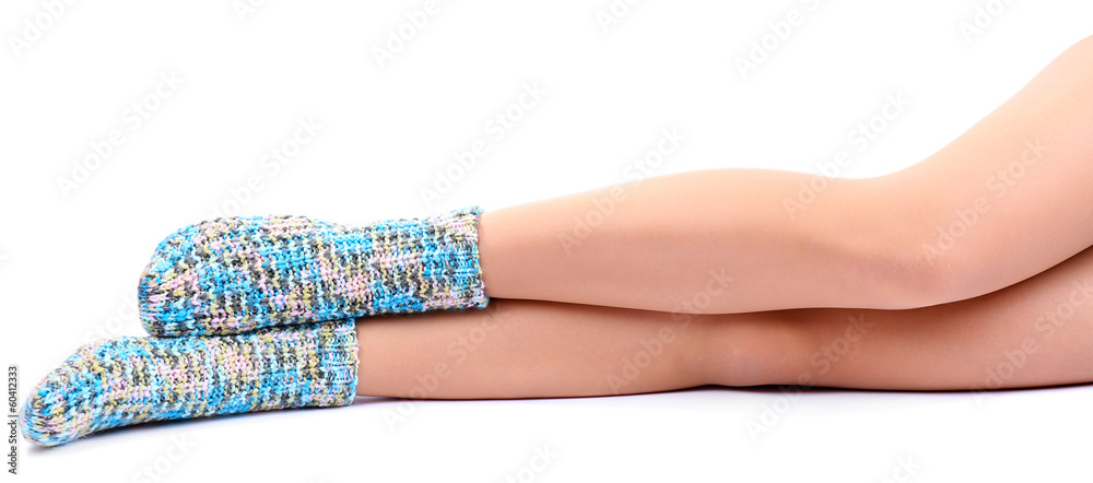Female Legs In Colorful Socks Isolated On White Wallpaper Mural - Decorly Solutions | Decorly Solutions