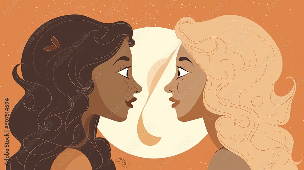 Lesbian couple kissing. Female couple in love. Pop art style. Pride Month, Pride Day. Pride girls love concept. Diversity, freedom and pride LGBT people. Illustration for banner, poster, postcard