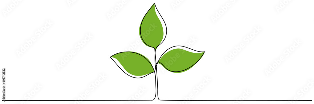 Leaves Continuous Line Drawing Plant Branch One Line Wallpaper Mural - Decorly Solutions | Decorly Solutions