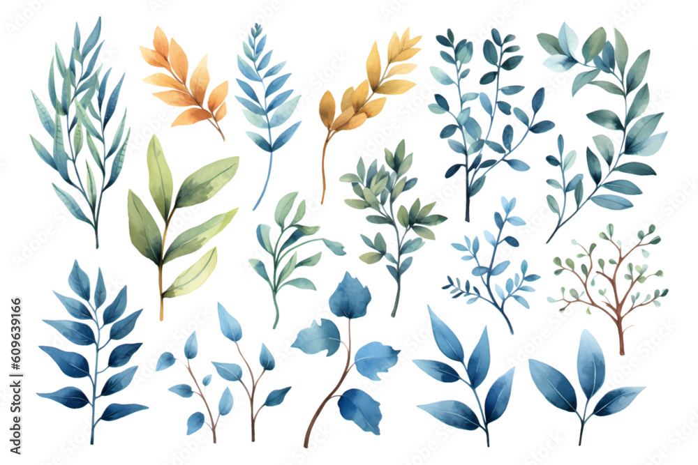 Set of beautiful colorful watercolor vector branches Wallpaper