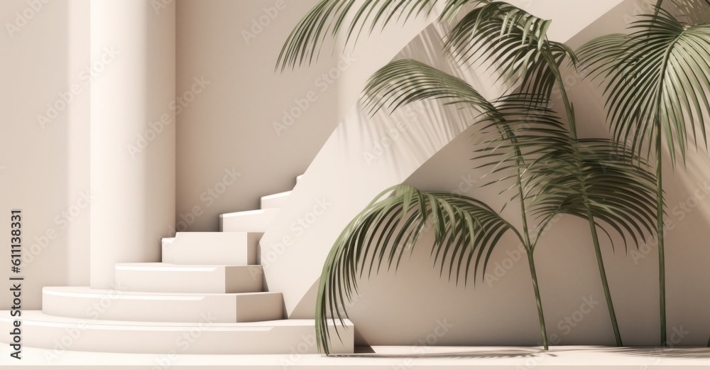 An Empty Room Surrounded By A Palm Tree Wallpaper Mural - Decorly Solutions | Decorly Solutions