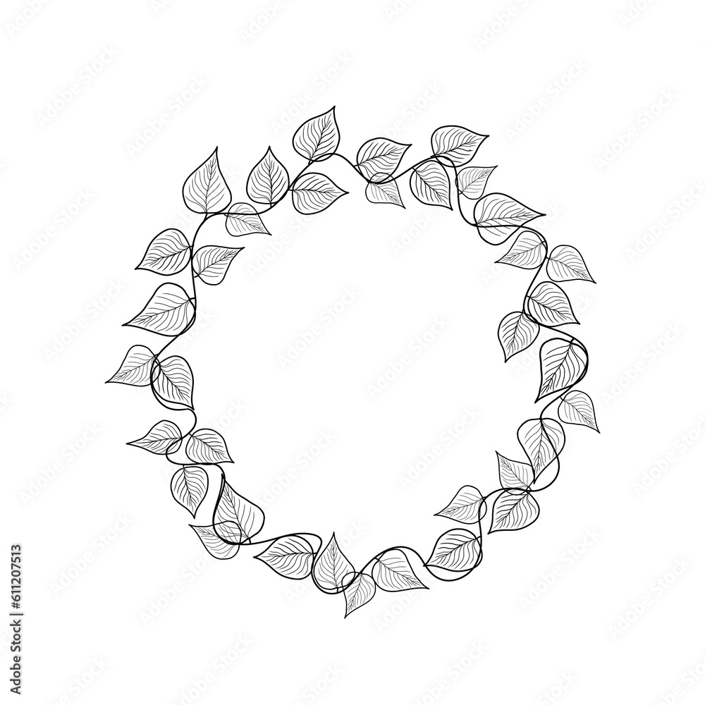 Leaf line art hand draw wreath nature swirl drawing for deco Wallpaper