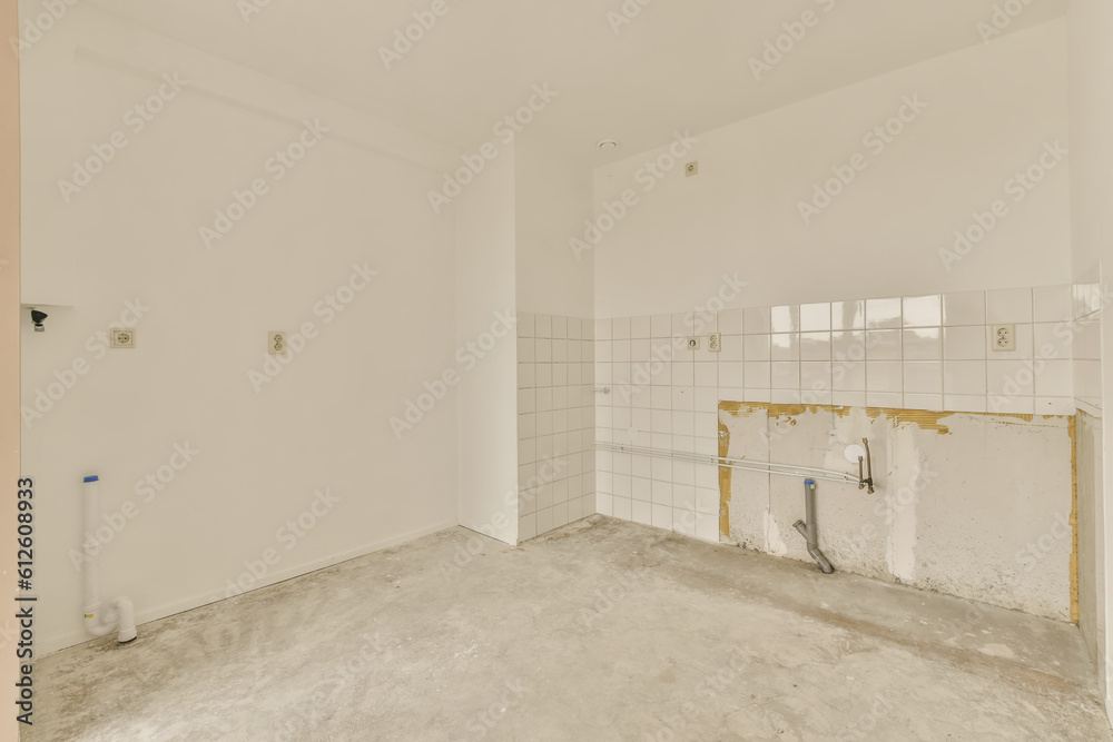 Empty unfurnished corridor room with minimal preparatory repairs. interior with white walls and drywall