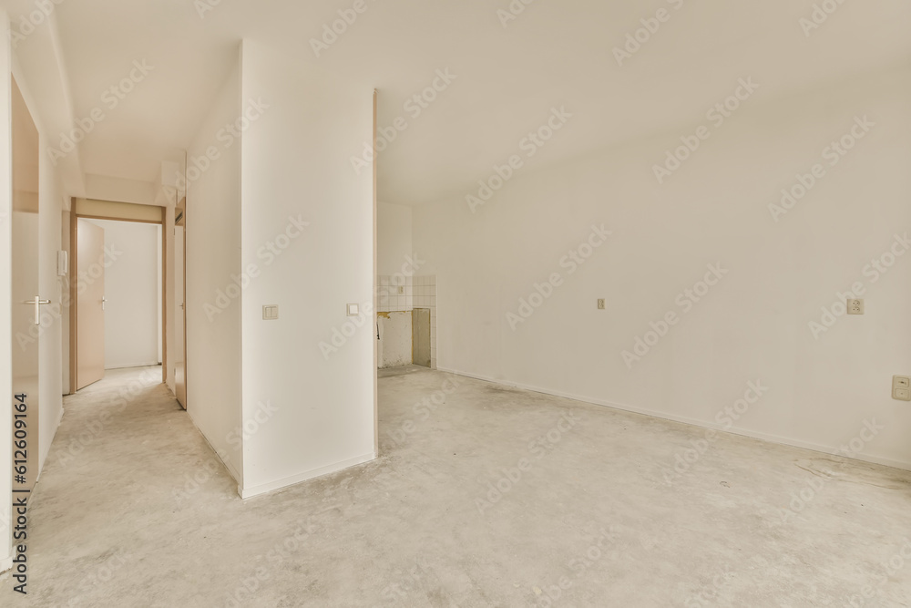 an empty room with white walls and no one wall in the room is visible on the right side of the photo