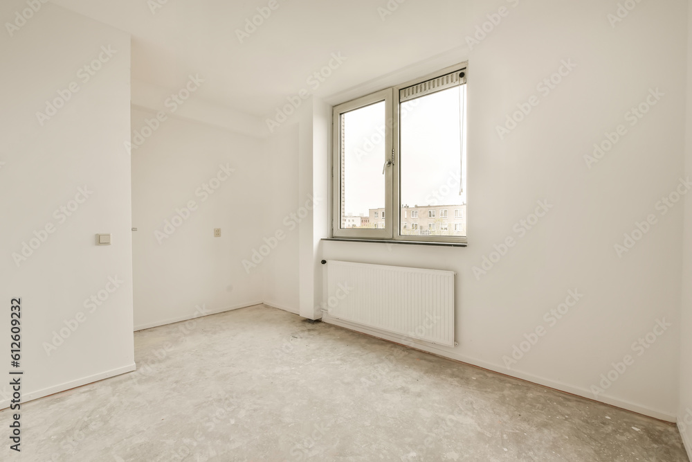 an empty room with white walls and no one wall in the room is visible on the right side of the photo