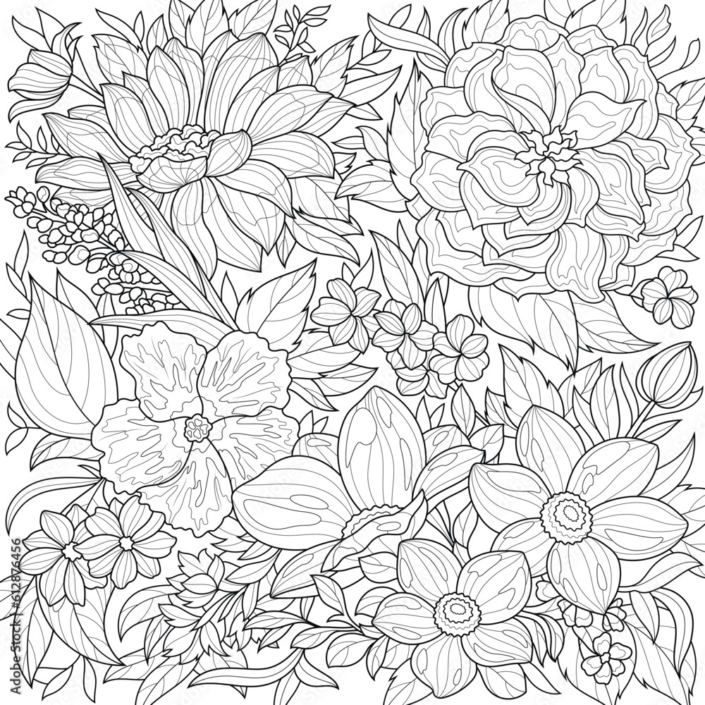 Flowers Coloring Book Antistress For Children And Adults Wallpaper Mural - Decorly Solutions | Decorly Solutions
