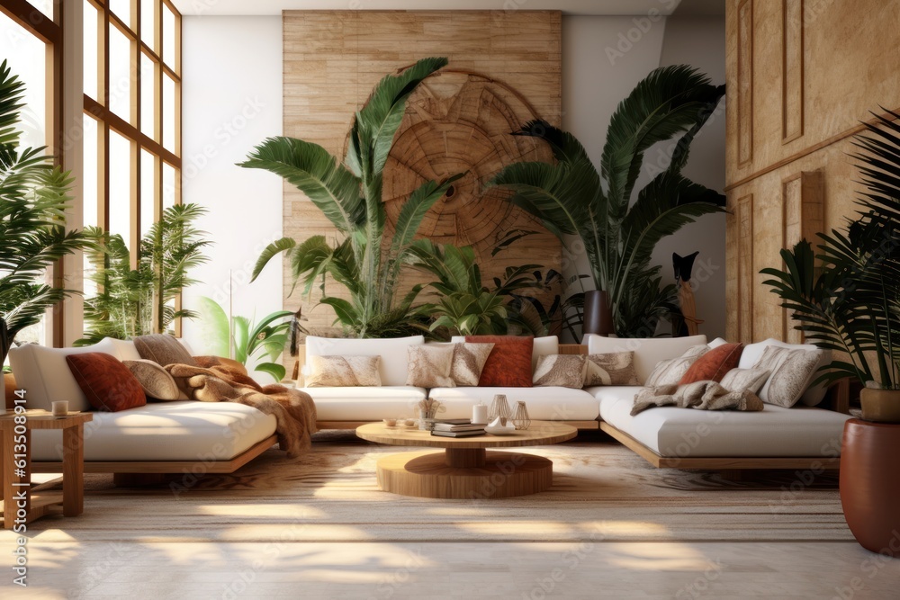 Tropical Modern Bali Interior Organic Aesthetics With Big Wallpaper Mural - Decorly Solutions | Decorly Solutions