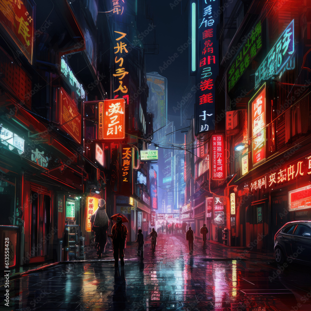 Futuristic Neotokyo Street City At Night Cyberpunk Neon Wallpaper Mural - Decorly Solutions | Decorly Solutions