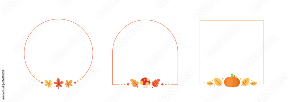 Autumn Geometric Frames Set. Halloween, Fall and Thanksgiving Template. Can be used for shopping sale, promo poster, banner, etc. Vector illustration
